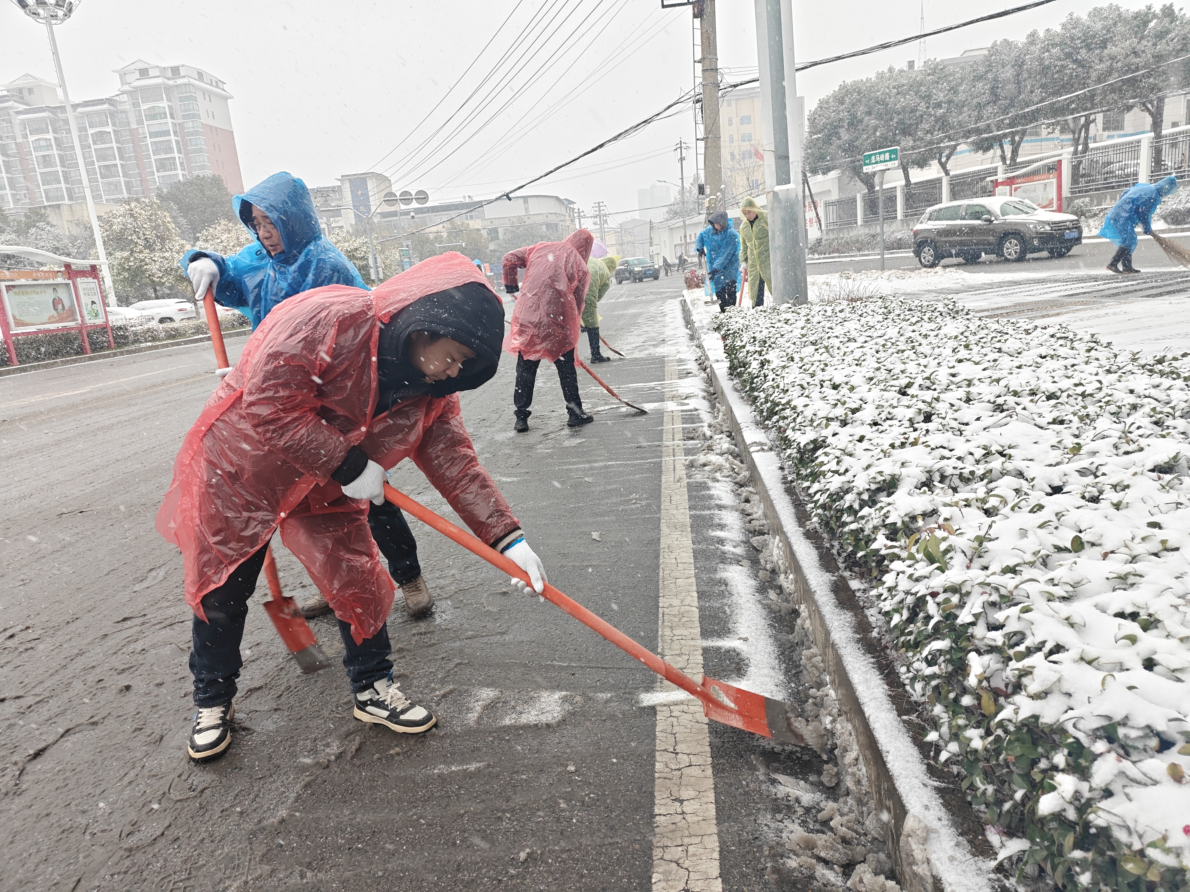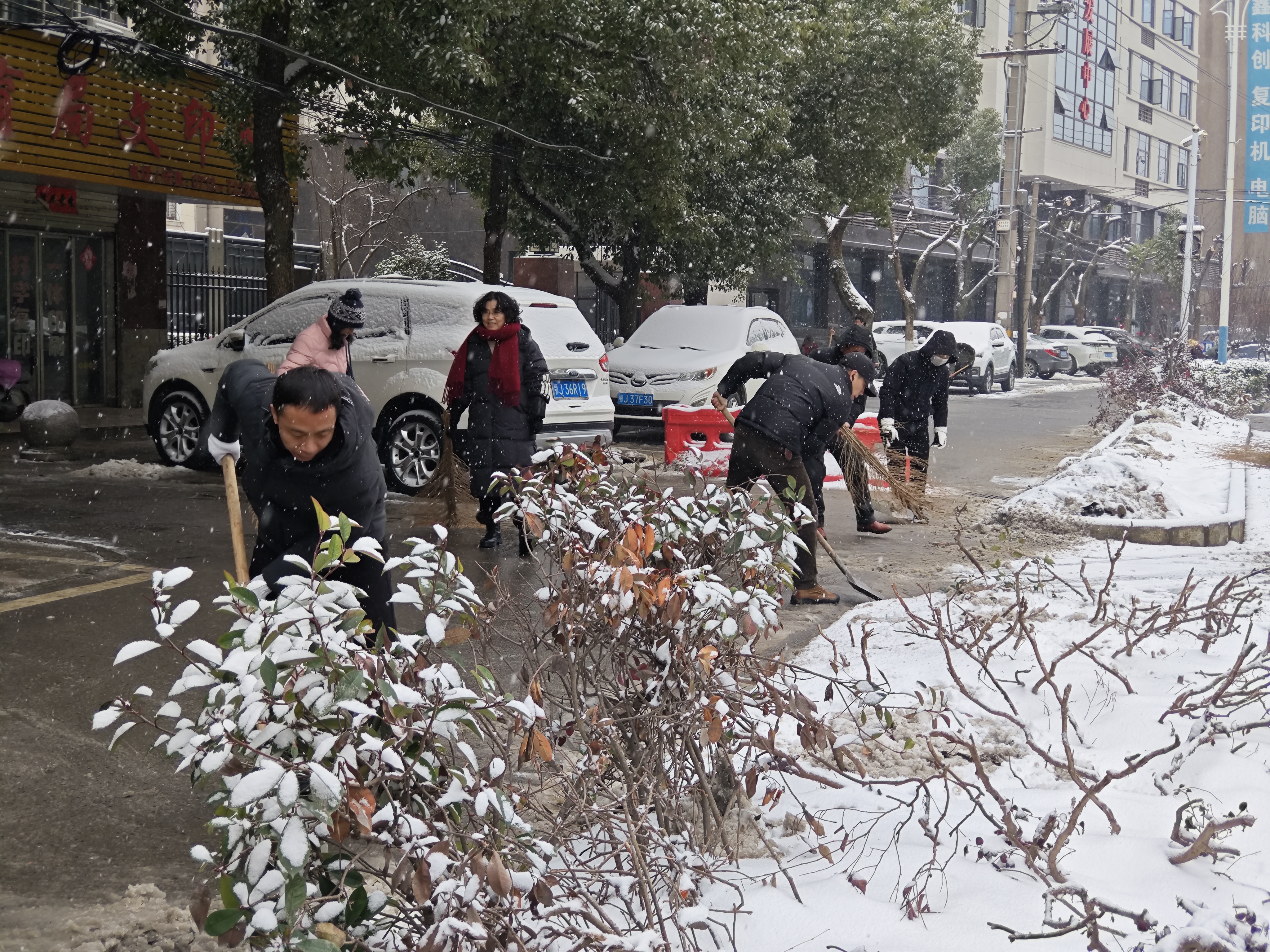 蕲州镇组织干部职工铲冰除雪,保障市民出行安全通畅。