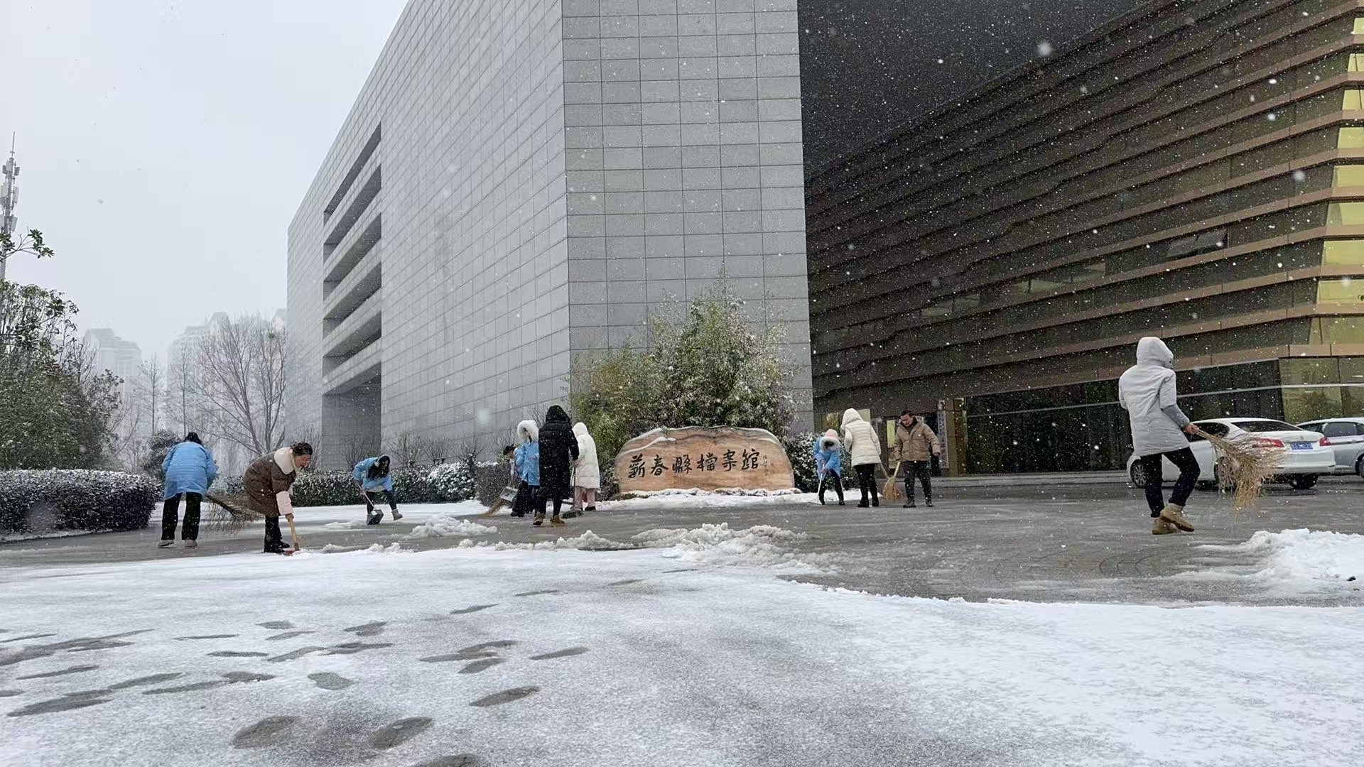 县科协组织干部职工铲冰除雪,保障市民出行安全通畅。