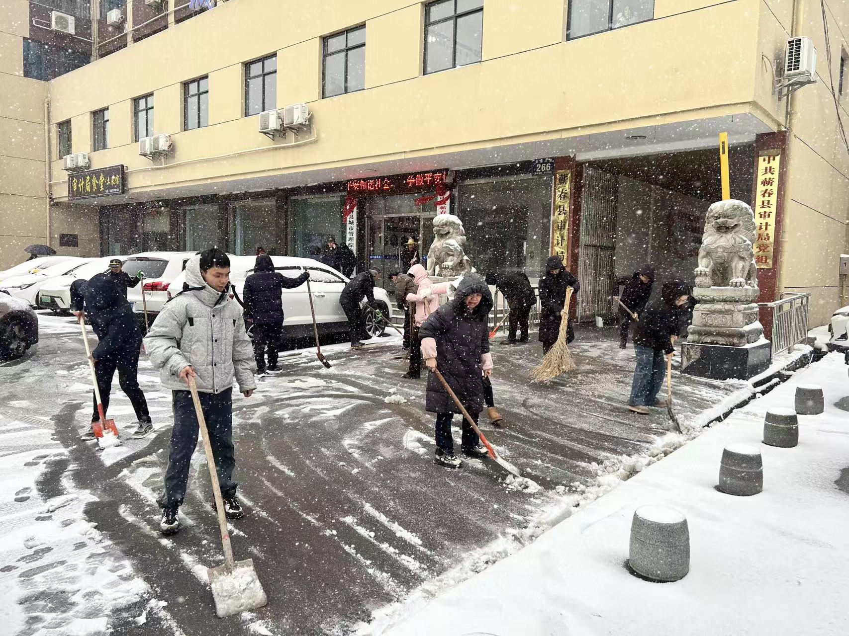 县审计局组织干部职工铲冰除雪,消除安全隐患。