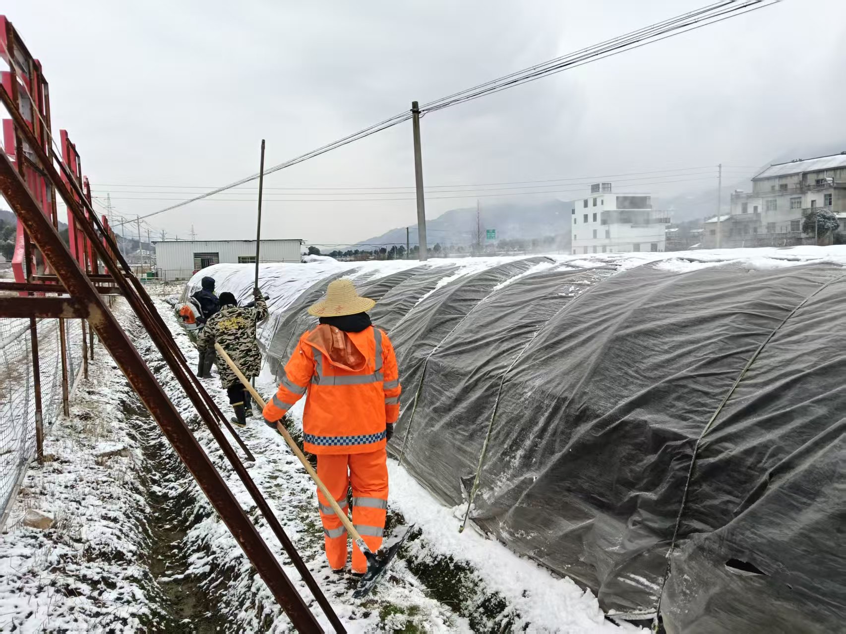 张塝镇组织力量对镇域内农业大棚开展积雪清理工作,及时消除棚体承压安全隐患,切实保障农业生产设施安全,全力守护农户生产利益。