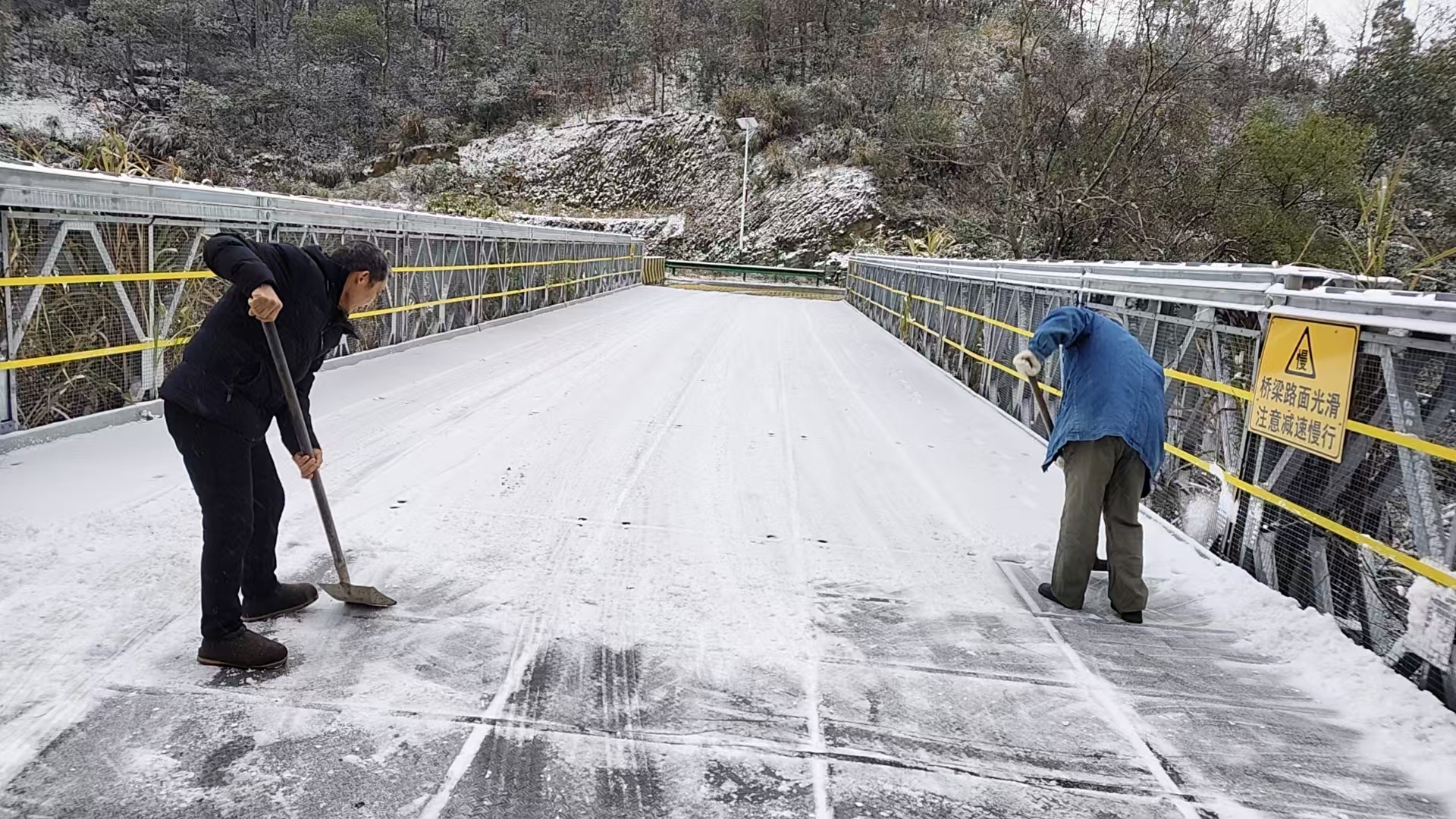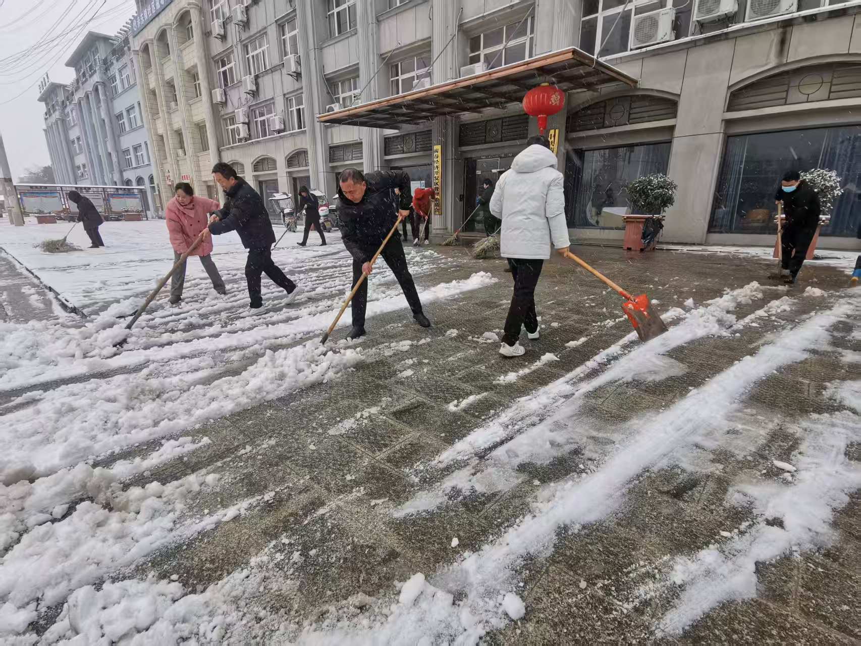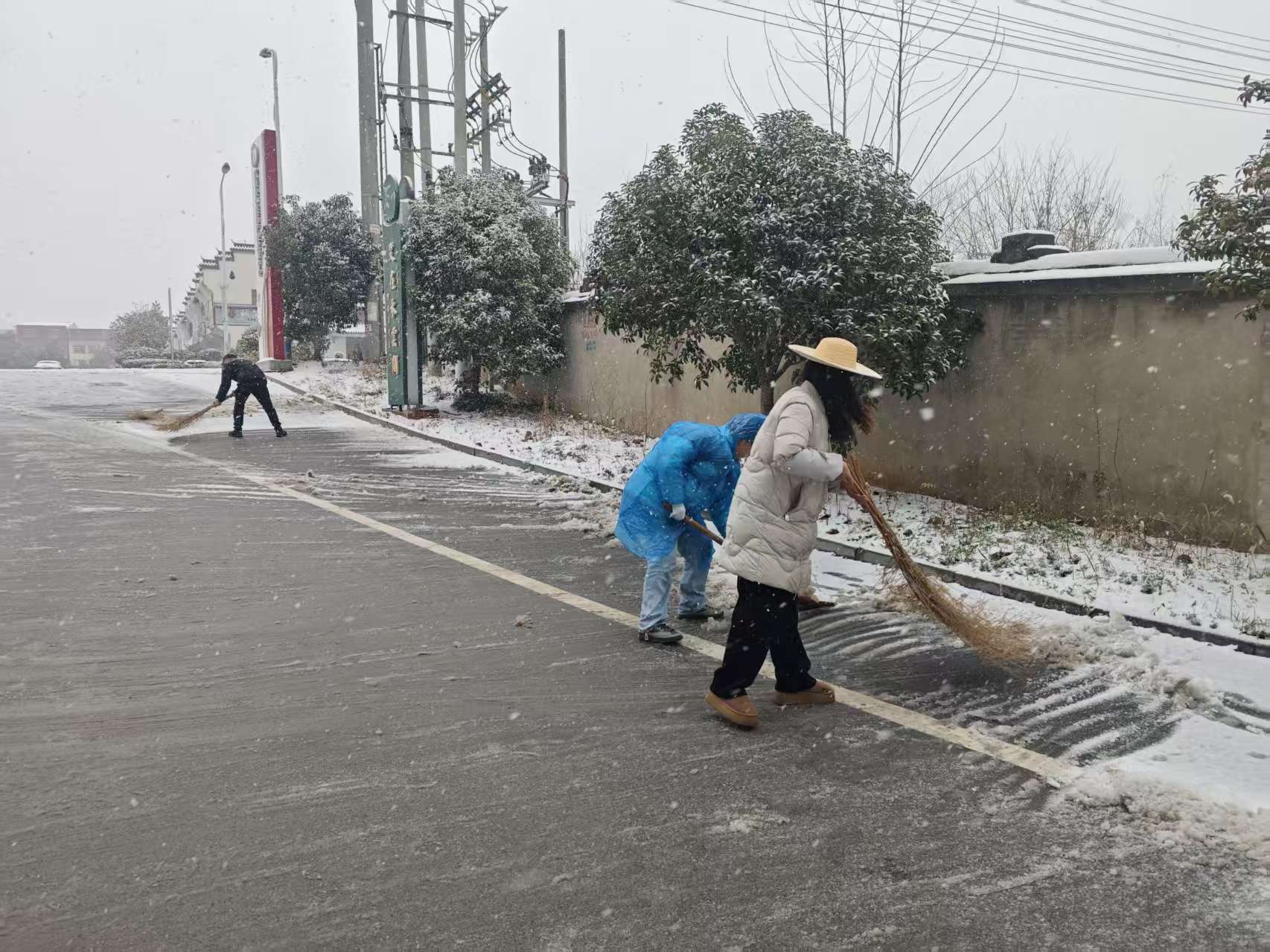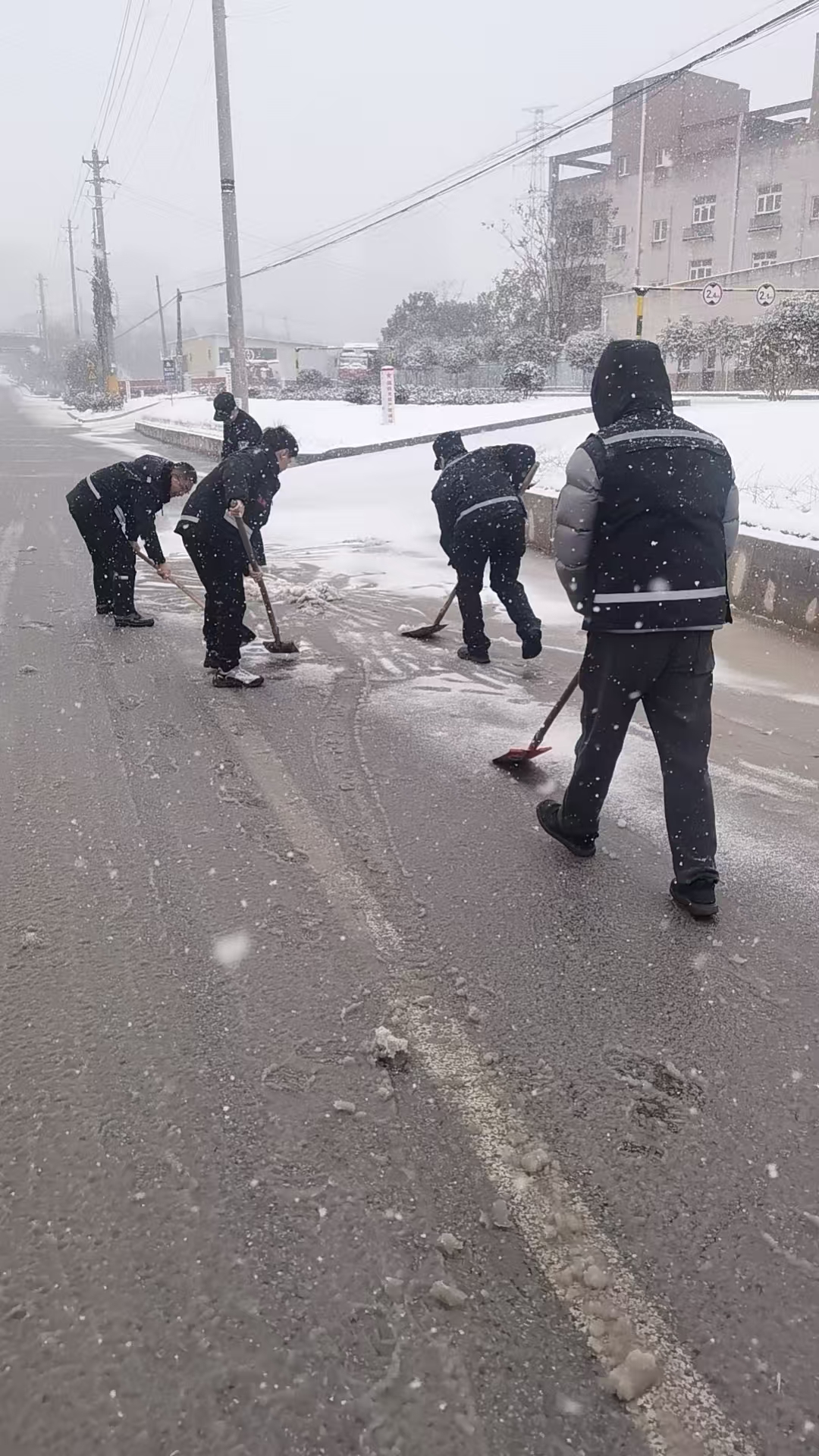 漕河镇党员干部铲冰除雪,消除安全隐患,全力保障公众出行安全顺畅。