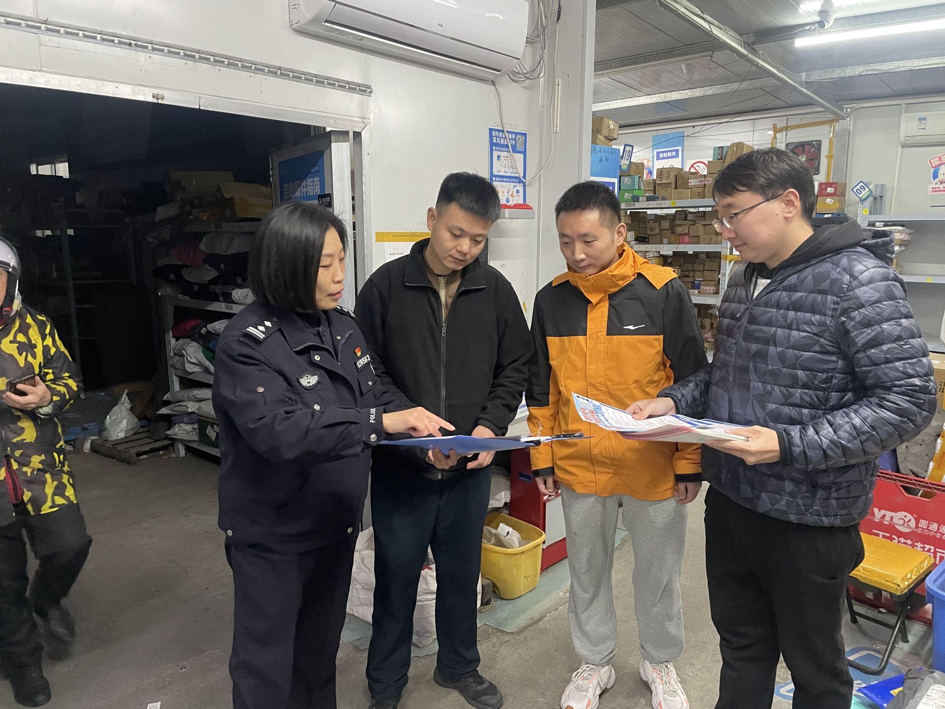 2025年2月1日上午,长江日报记者在海工社区采访时,遇到了赶来送锦旗的海工菜鸟驿站负责人沈超。