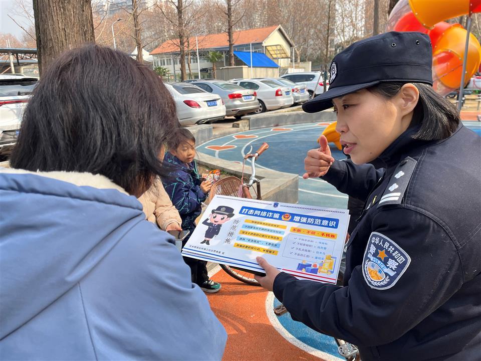 午后暖阳正好,邵楠的身影又出现在社区广场上。带着她自创的反诈宣传海报,结合近期高发的"春节红包诈骗""冒充亲友借钱"等案例,用通俗的语言向居民讲解防范技巧,"春节前后是诈骗高发期,得多跟大家念叨念叨,守住咱们的'钱袋子'才安心。"邵楠一边给老人讲解手机反诈设置,一边说道,"大家收到陌生的链接、二维码千万别点,儿女在外拜年,借钱一定要视频核实!"邵楠一边说,一边给老人们发放印有反诈口诀的海报。遇到不会操作手机的老人,她还手把手教大家开启来电预警功能,68岁的王大爷笑着说:"邵警官讲得明白又好记,跟着她学,咱们的'钱袋子'肯定安全!"