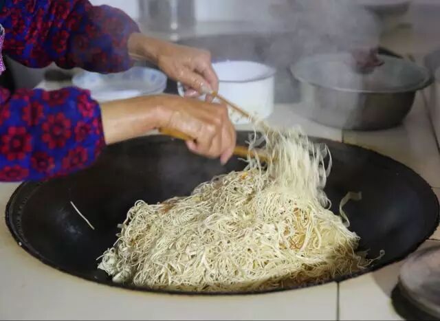 蒸面最讲究耐心和火候。要细火慢蒸,一般每隔半盏茶要翻动一次,第一次揭开锅要时间长一点,翻动蒸面是为了防止蒸面结个巴,翻动要用筷子抖散