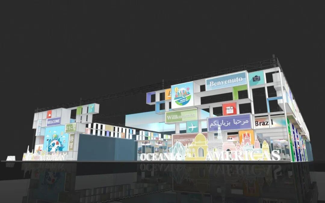 在国际馆·缤纷世界国际免税区,以世界各地著名景点造景打造的世界之窗场景式体验馆,展示中国与友好国家及城市的经济互联、文化交融。
