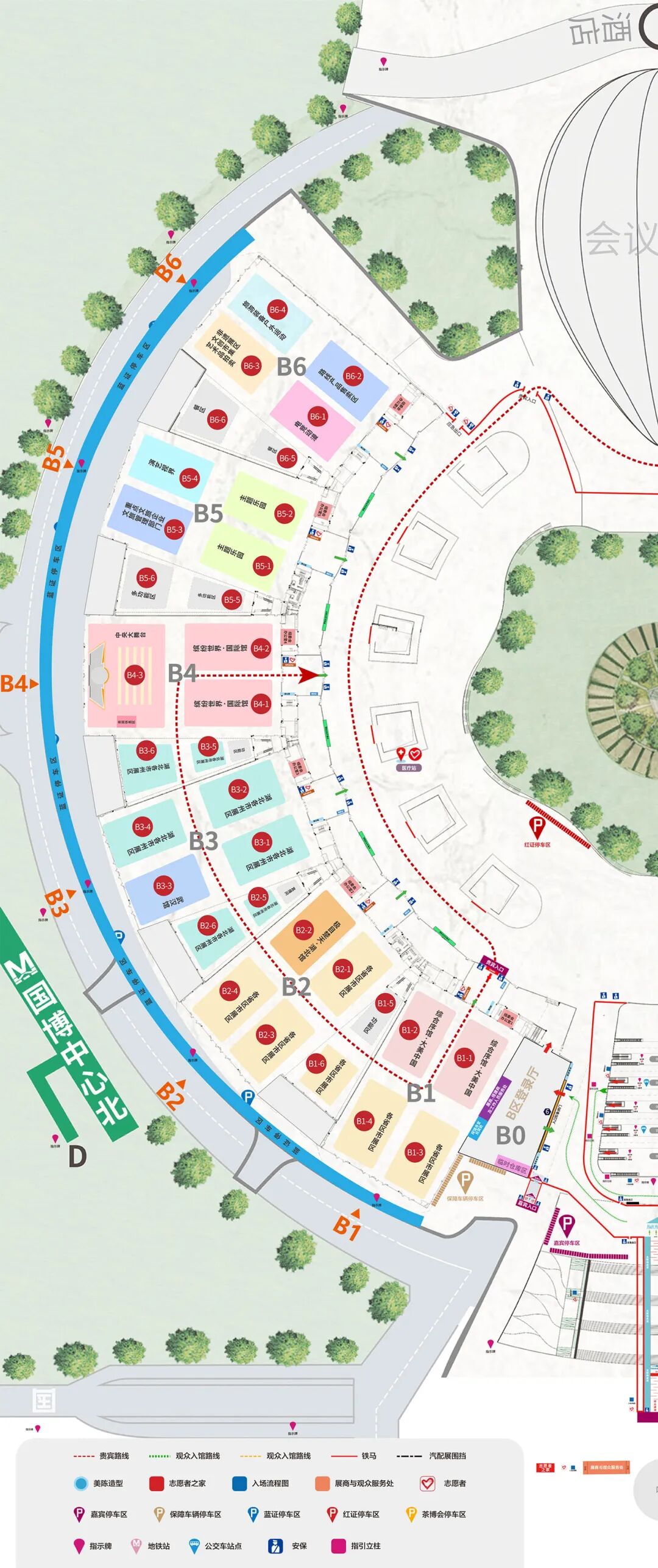 本届文旅博览会主入口在“国博中心南”地铁站C口附近,穿过B0登录厅即可进入展会现场参观,其中: