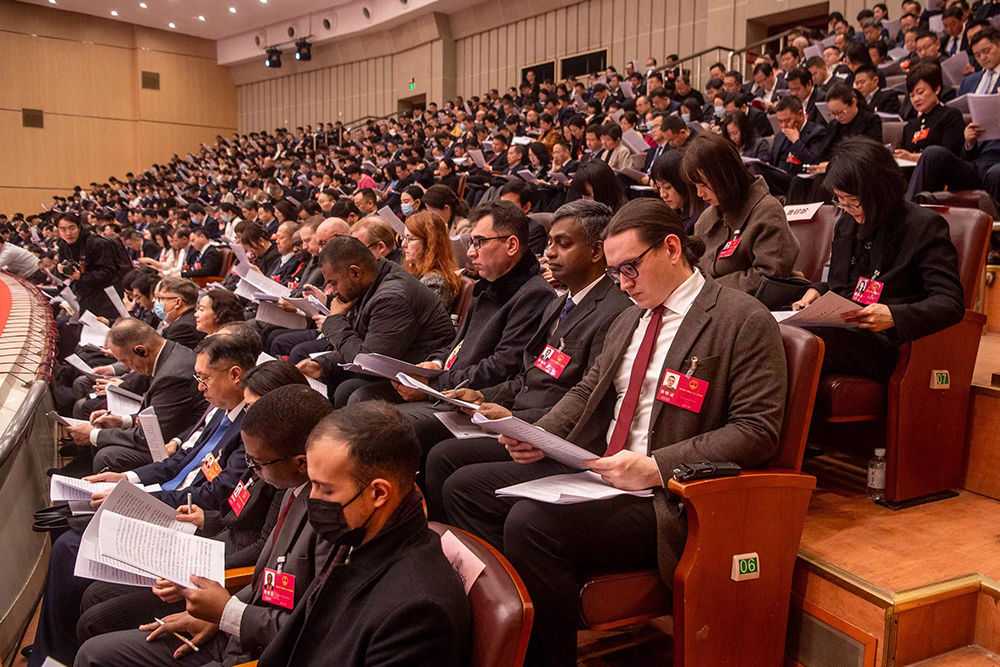 在两会现场,记者看到有不少“洋面孔”列席人大会议。他们在同声传译的辅助下,不时还记录感兴趣的内容。