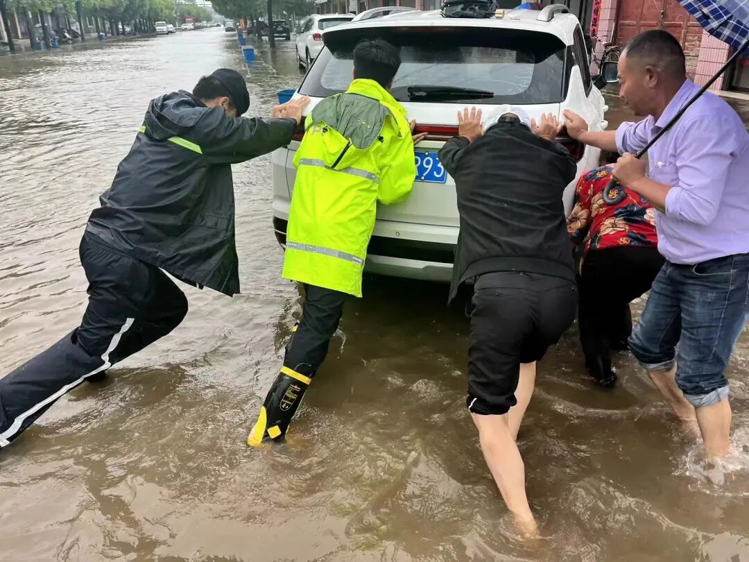“太感谢了!警察同志,要不是你们及时出现帮我推车,不然我真的不知道怎么办才好。”6月28日,石首市公安局小河口派出所民辅警在辖区开展巡逻,查看路面有无积水并进行交通疏导。巡逻至小河口镇中华新区路段时,发现路边有一辆汽车在积水中无法动弹。车主十分焦急,试图将汽车推上自家门前。民辅警见状立即停车上前,帮助车主一起推车上岸。经过不懈努力,终于将汽车从积水中推上了岸。(湖北日报客户端石首频道 通讯员陈玲)