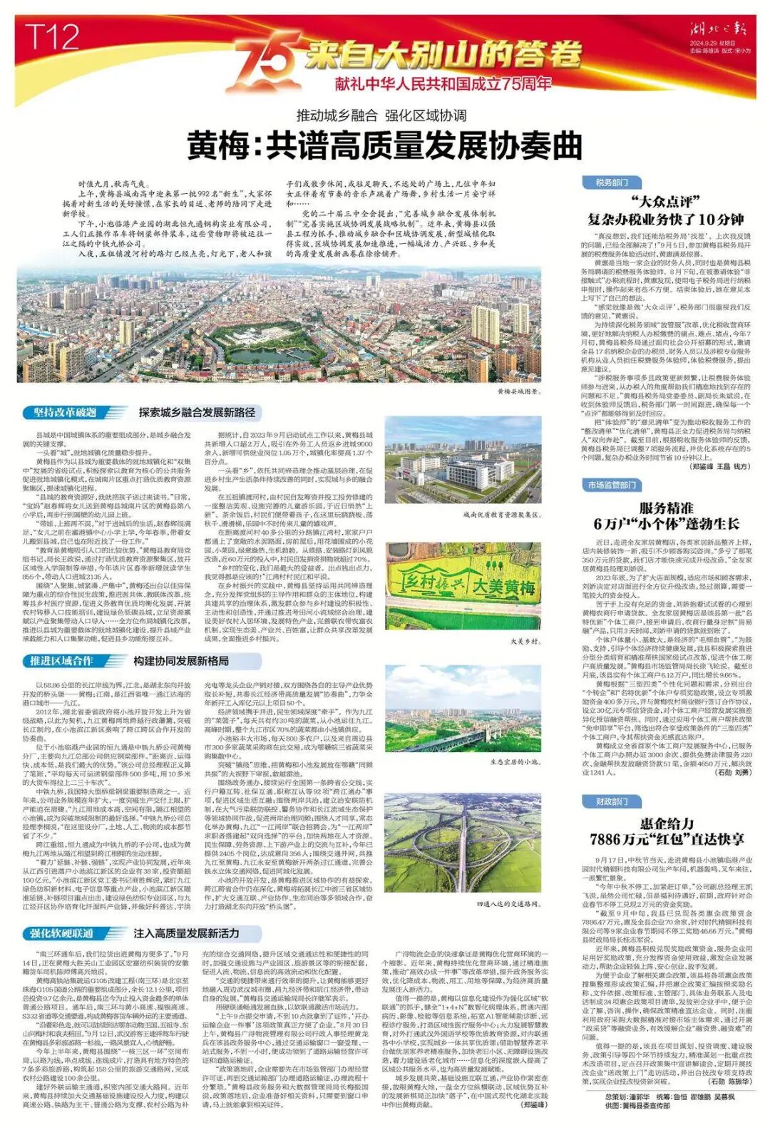党的二十届三中全会提出,“完善城乡融合发展体制机制”“完善实施区域协调发展战略机制”。近年来,黄梅县以强县工程为抓手,推动城乡融合和区域协调发展,新型城镇化取得实效,区域协调发展加速推进,一幅城活力、产兴旺、乡和美的高质量发展新画卷在徐徐铺开。