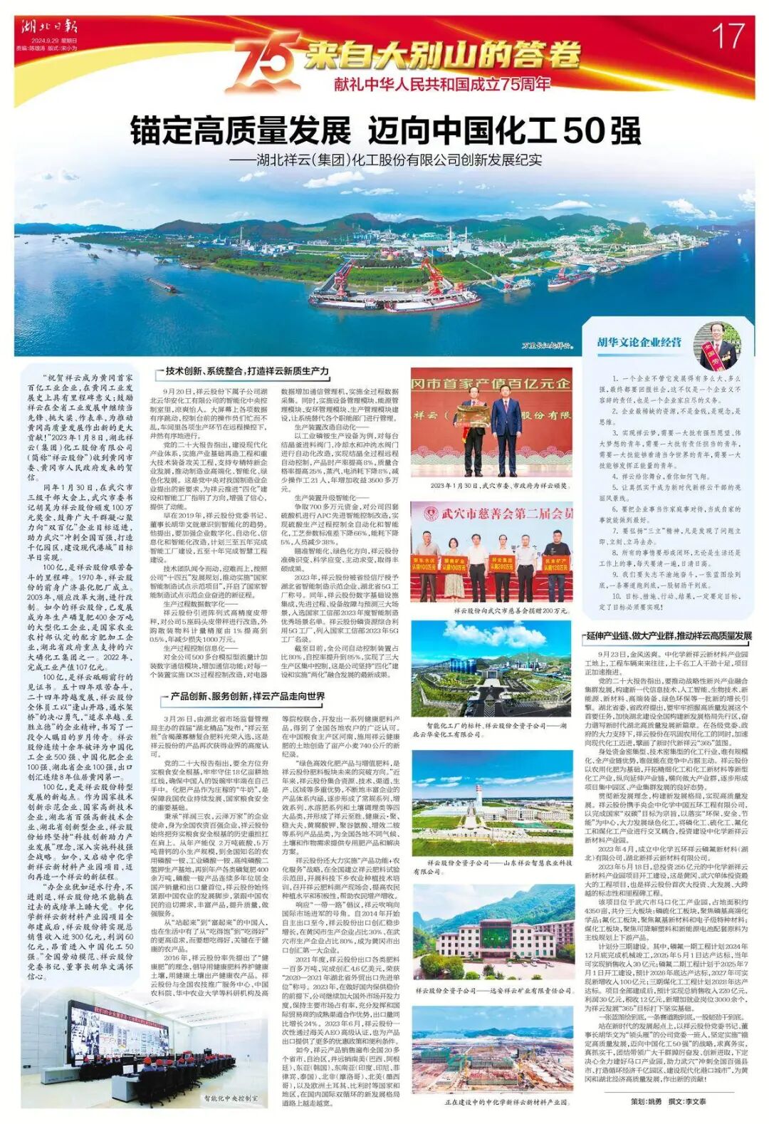 “祝贺祥云成为黄冈首家百亿工业企业,在黄冈工业发展史上具有里程碑意义;鼓励祥云在全省工业发展中继续当先锋、挑大梁、作表率,为推动黄冈高质量发展作出新的更大贡献!”2023年1月8日,湖北祥云(集团)化工股份有限公司(简称“祥云股份”)收到黄冈市委、黄冈市人民政府发来的贺信。