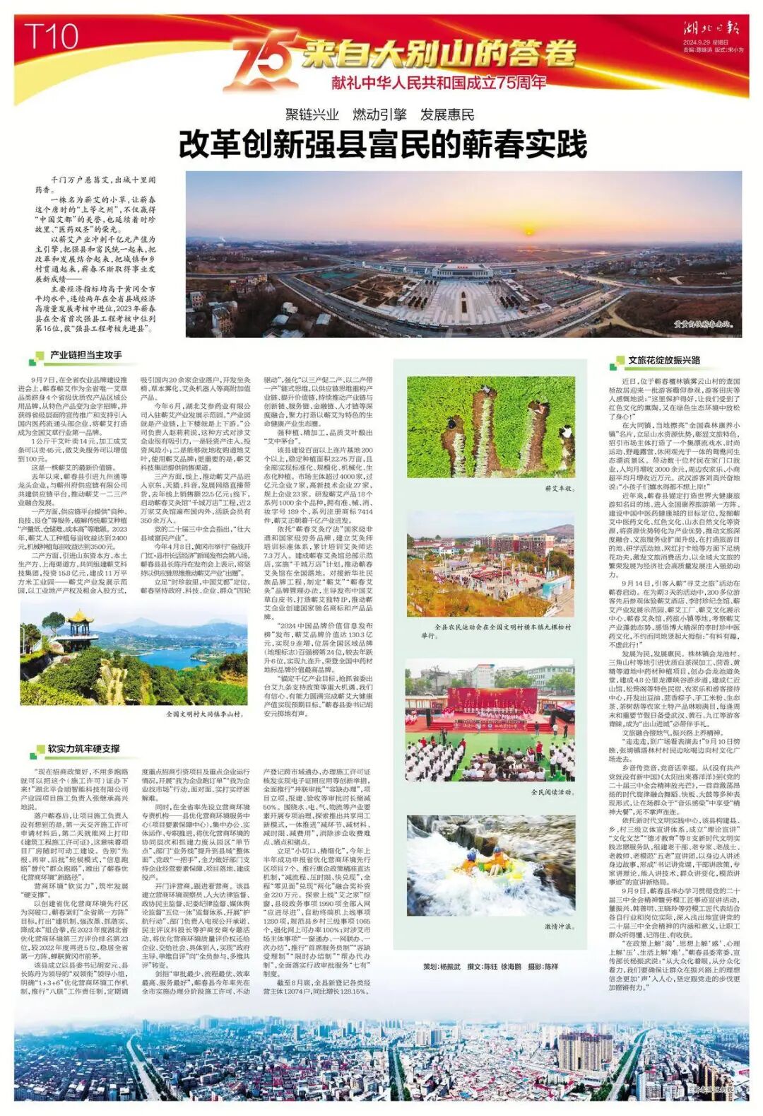 以蕲艾产业冲刺千亿元产值为主引擎,把强县和富民统一起来,把改革和发展结合起来,把城镇和乡村贯通起来,蕲春不断取得事业发展新成绩——