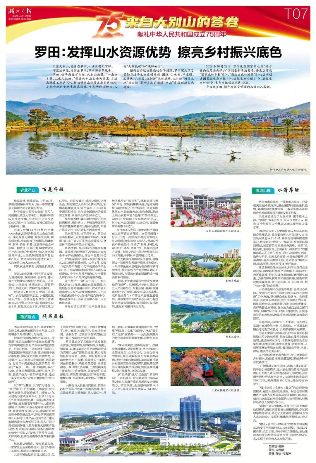 擦亮生态这块最亮的金字招牌,罗田深入学习贯彻习近平生态文明思想,围绕“山水美、产业强、品牌优、人民富、机制活”总体思路,以打造“两区三地”为目标,举全县之力推进“两山”实践创新基地建设。