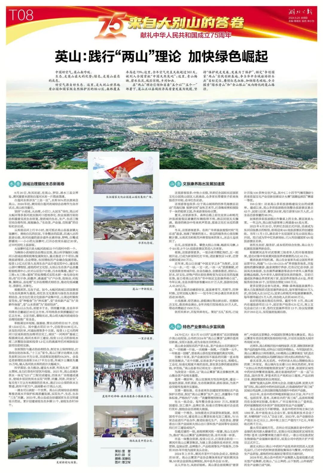 生态,是英山最大的优势;绿色,是英山最亮的底色。