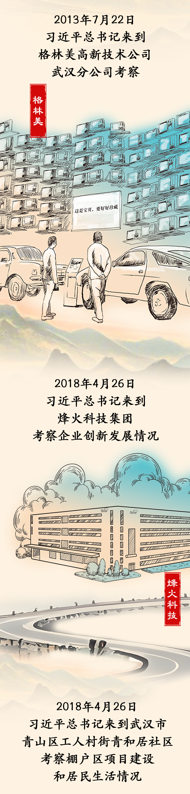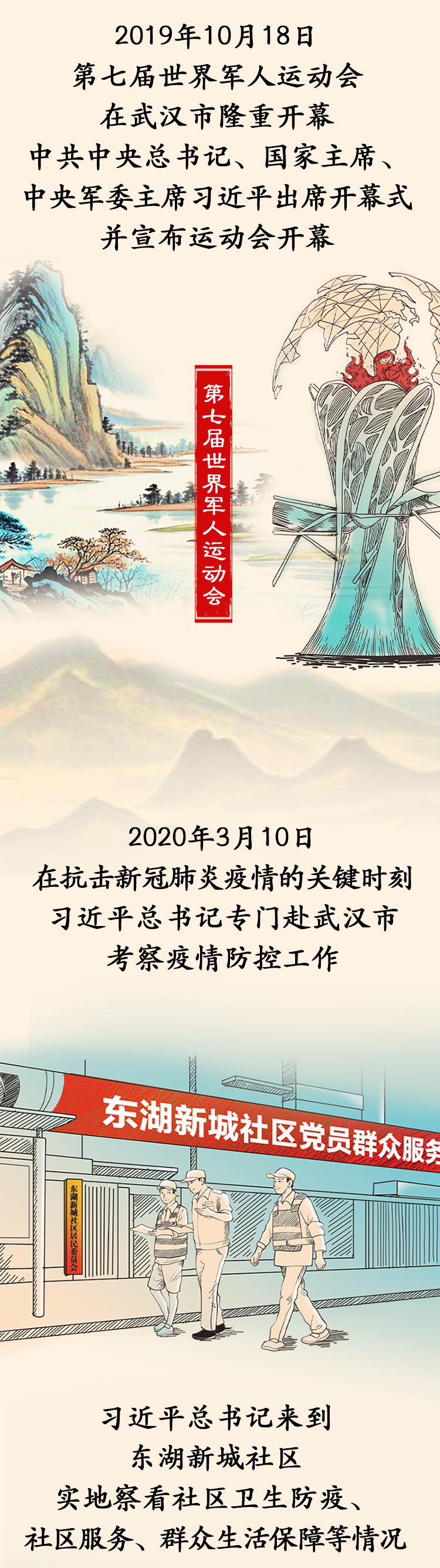 党的十八大以来习近平总书记先后六次亲临湖北武汉足迹遍布高新企业、工厂、社区等地方对湖北武汉饱含厚爱、寄予厚望