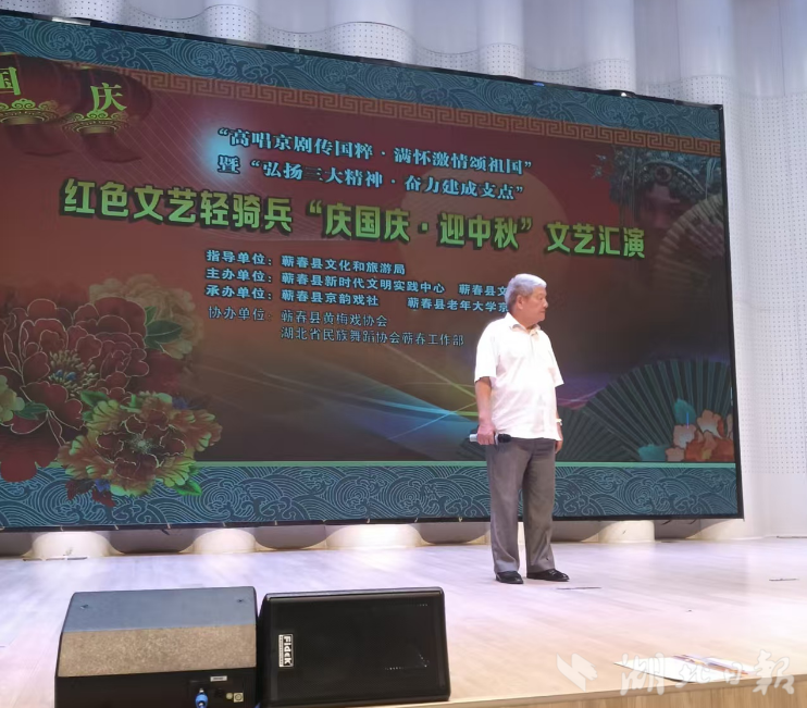 当最后一段旋律落下,全场掌声经久不息。此次汇演既是蕲春县老年大学京剧社对传统艺术的传承与致敬,更是老同志们以戏曲为媒向祖国母亲献上的深情祝福,让红色基因在婉转京韵中代代相传,让双节喜悦在文化盛宴中浸润人心。