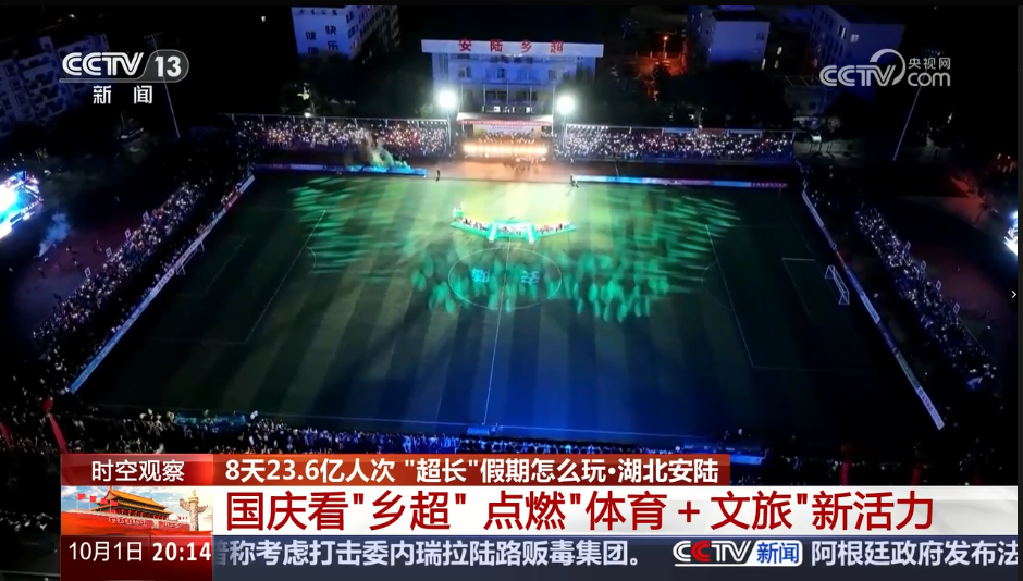 体旅融合同样“出圈”。10月1日晚,央视新闻《东方时空》聚焦安陆“乡超”,报道《国庆看“乡超” 点燃“体育+文旅”新活力》,这也是央视第6次关注安陆“乡超”。该赛事带动当地酒店住宿、餐饮行业营业额预计提升40%以上,推动游客从“路过游”转向“度假游”。