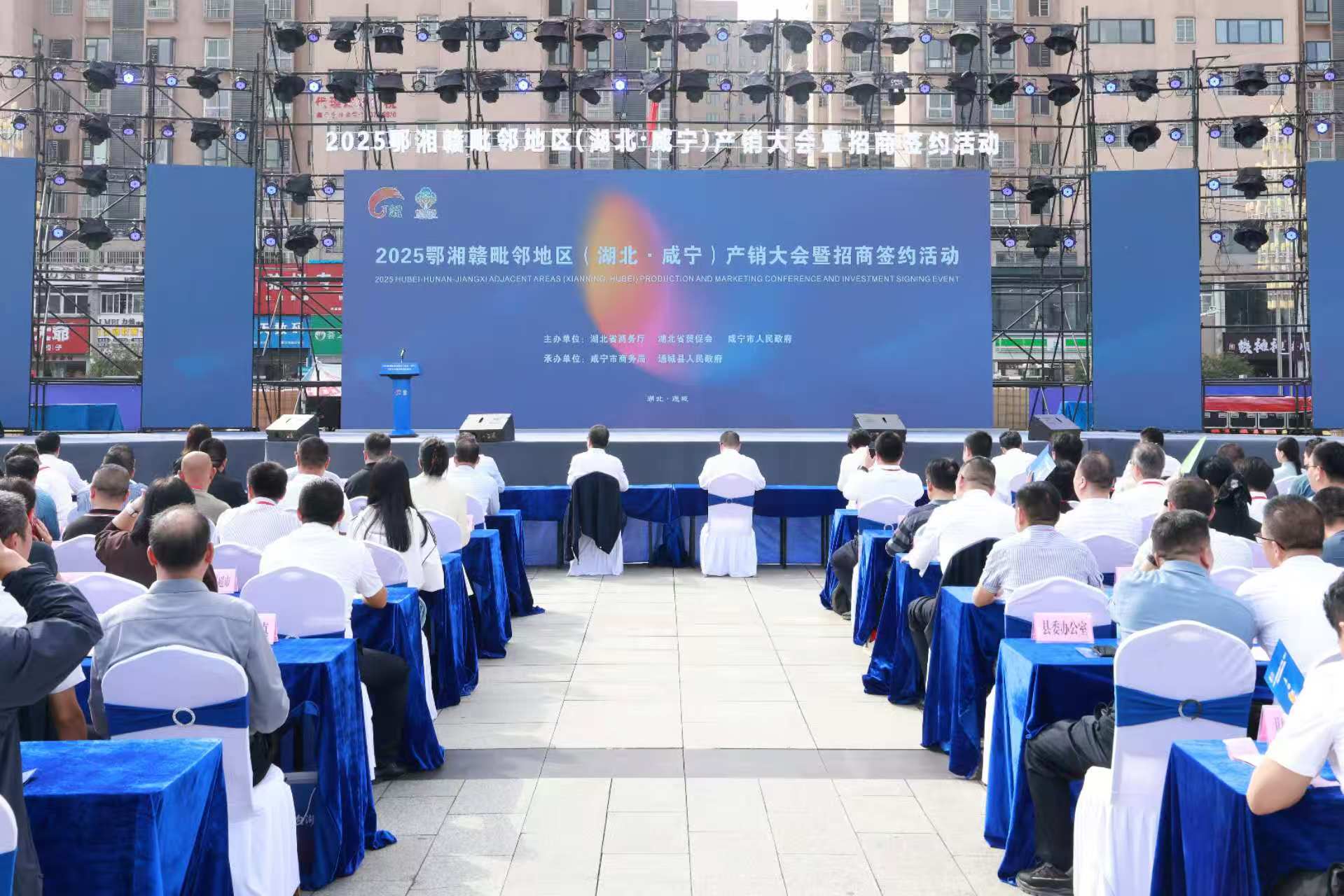 金秋十月,硕果飘香;楚地相聚,共话产销。10月17日,2025鄂湘赣毗邻地区(湖北·咸宁)产销大会暨招商签约活动在通城县正式启动。湖北省商务厅二级巡视员陈斌,中国国际贸易促进委员会湖北省委员会二级巡视员于加珠,咸宁市政协副主席王芳,咸宁市人民政府副秘书长石书林,通城县委书记黄建平等出席活动。通城县委副书记、县长杨修伟主持活动。