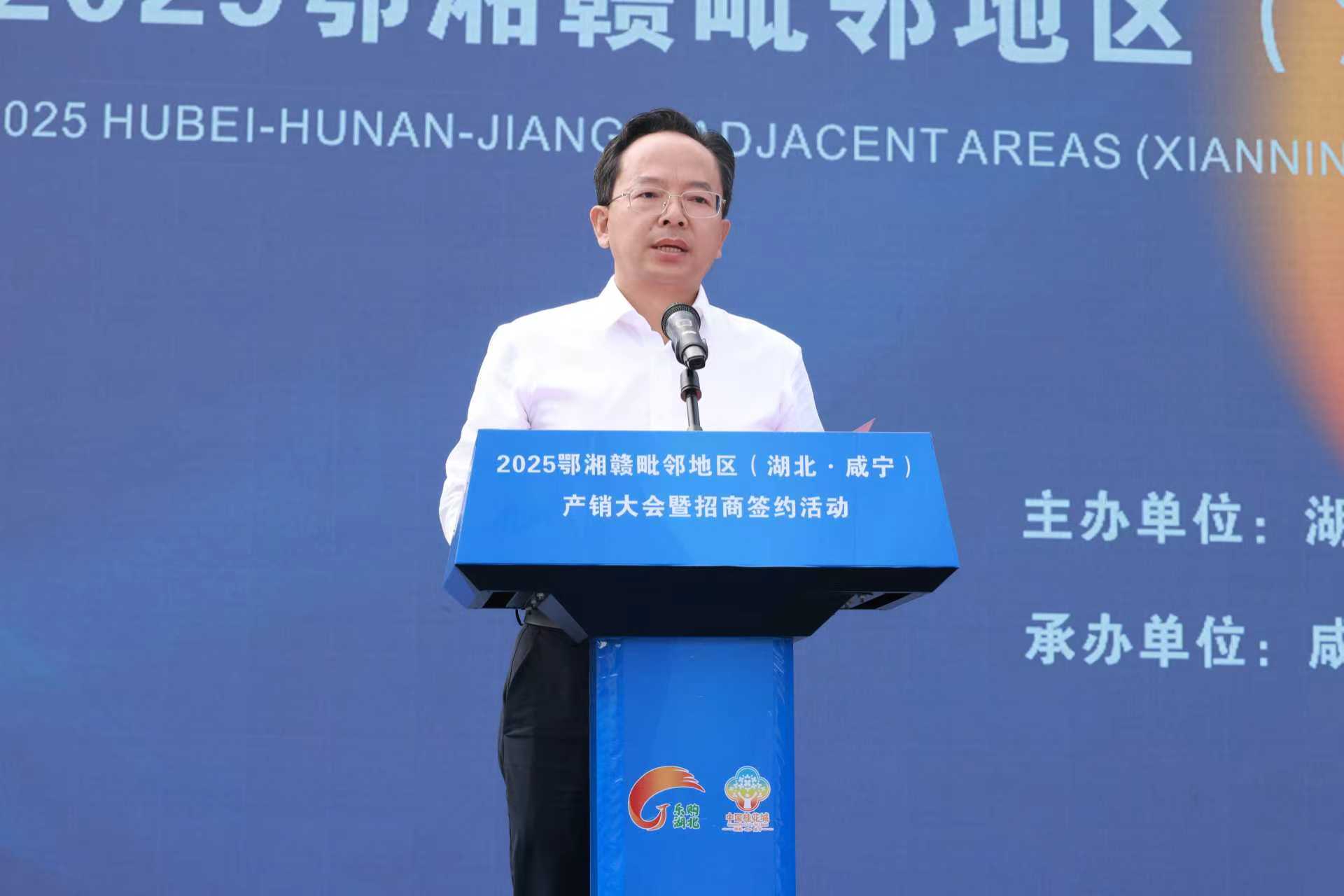 陈斌在讲话中表示,举办2025鄂湘赣毗邻地区(湖北·咸宁)产销大会暨招商签约活动,既是贯彻国家扩大内需战略、推动区域协调发展的具体实践,也是依托“乐购湖北”品牌、激活三省产业活力的创新举措。当前,我国正处于构建新发展格局的关键时期,区域协同发展已经成为推动经济高质量发展的重要引擎。湖北省商务厅始终高度重视鄂湘赣毗邻地区的合作发展,将以此次活动为契机,从政策支持、资源对接、平台搭建等方面为咸宁、岳阳、九江三地深化商贸合作提供更多助力。期待通过此次产销大会,进一步深化三地的交流合作,在农产品产销对接、电商产业协同、商贸市场共建等领域取得更多的实质性成果。期待三地的企业及企业家抓住机遇,在互利共赢中实现更大的发展。相信通过三地的共同努力,一定能够打造出区域协同发展的典范,为长江中游城市群建设贡献更多的商贸力量。