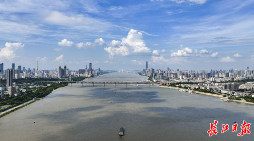 蓝天白云,极目楚天舒,武汉两江四岸,大气磅礴。记者胡冬冬 摄