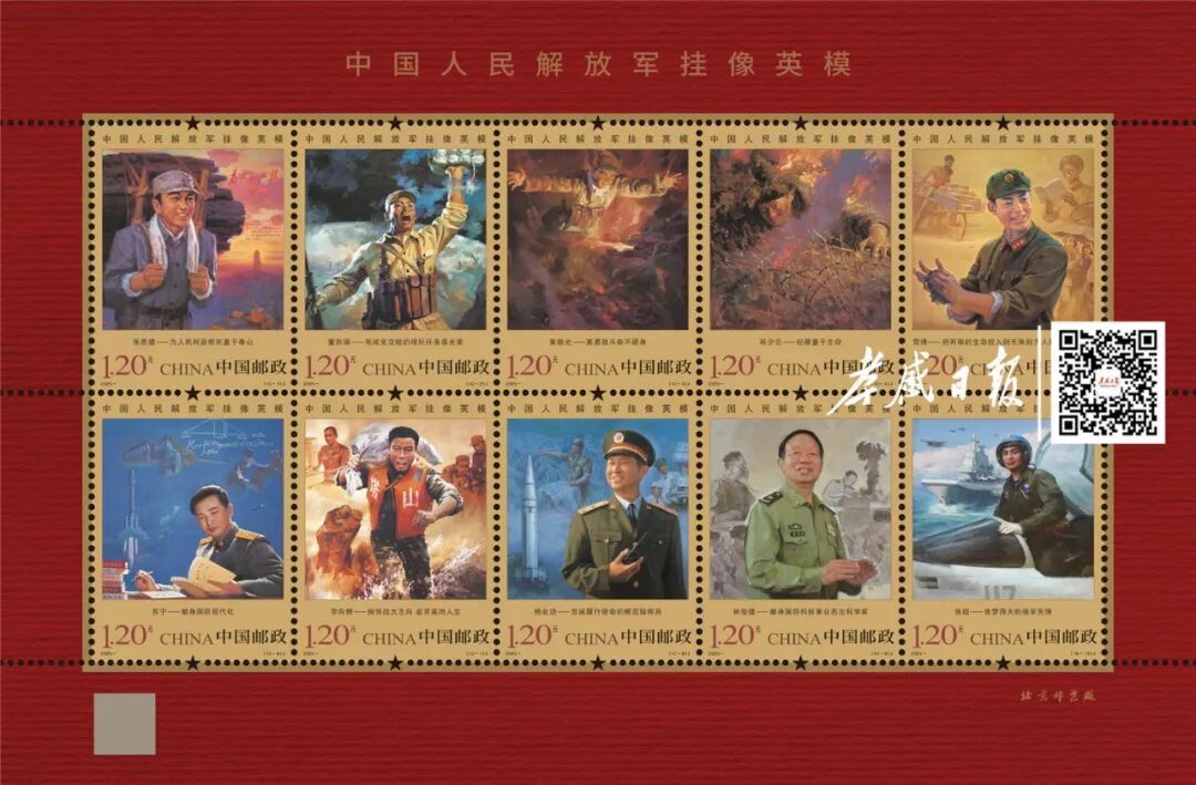 《中国人民解放军挂像英模》纪念邮票套票版。全媒体记者吴垠 摄