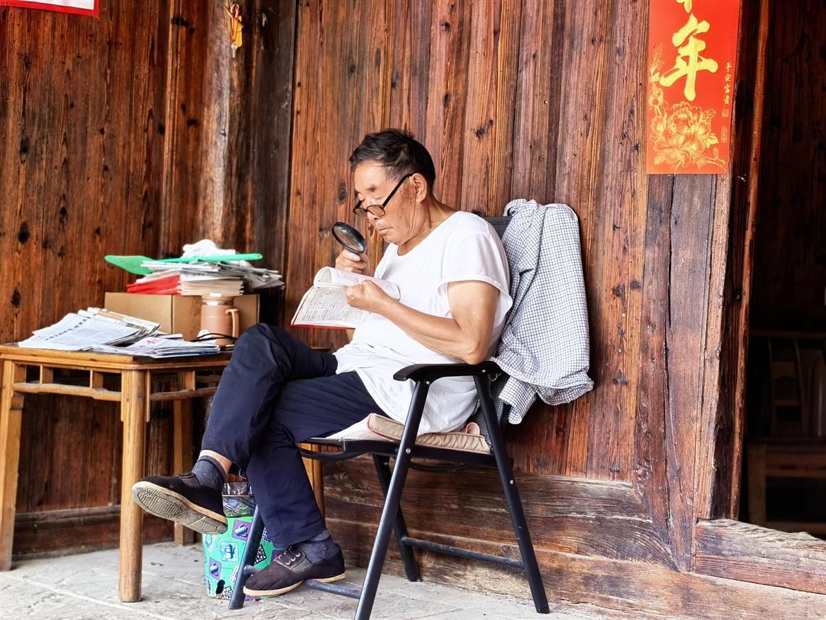 退休后种了28年地,罗官章的脸被晒成了古铜色,远看就像一尊泥塑。但他仍然坚持每天读书看报,把习近平总书记“空谈误国、实干兴邦”的指示手抄后贴到墙上。