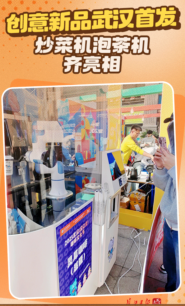 汉口北国际贸易城里,一台银色炒菜机前面,围了不少好奇的观众。
