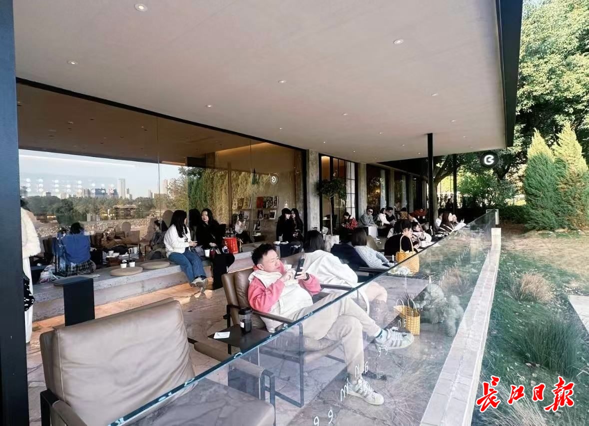 11月27日,大学生李萌又从学校赶来汉阳墨水湖畔,打卡这里新开的暗弥咖啡。和同学点了两杯招牌咖啡后,李萌终于如愿“抢”到了落地窗前的位置。这个位置能看到湖水而且光线好,等她摆好姿势,同伴迅速按下快门。“周末来的时候人非常多,连坐的位置都没有,这次特地选了工作日来,没想到人还是很多。”